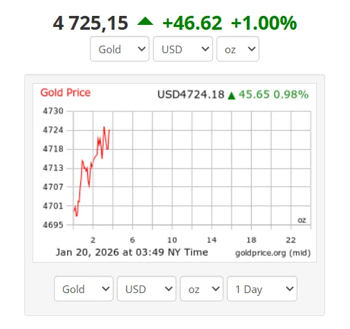 Ралли драгметаллов спровоцировано ухудшением глобальных настроений после угроз президента США Дональда Трампа ввести новые тарифы против европейских союзников в случае отказа Дании продать Гренландию.