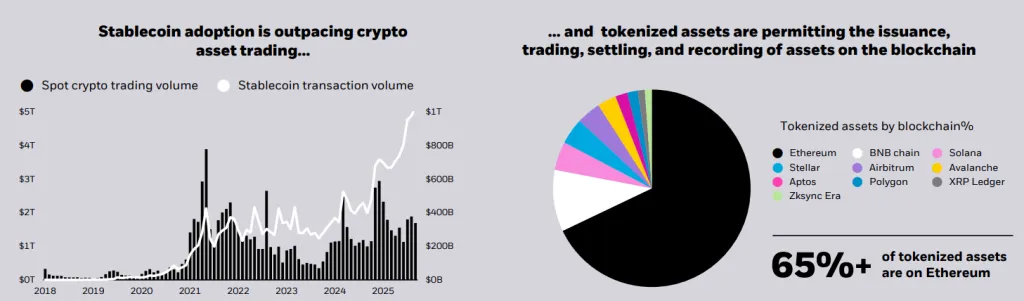 Отдельное внимание сектору уделяют в BlackRock. В прогнозе на 2026 год управляющая компания отметила, что значительную выгоду от токенизации может получить Ethereum. Уже сейчас в этой сети размещено около 65% всех подобных активов.