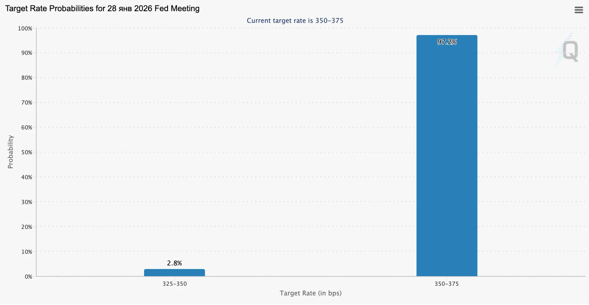 28 января FOMC примет решение по ключевой ставке. Подавляющее большинство инвесторов уверены, что показатель останется на текущем уровне — в диапазоне 3,5-3,75%.