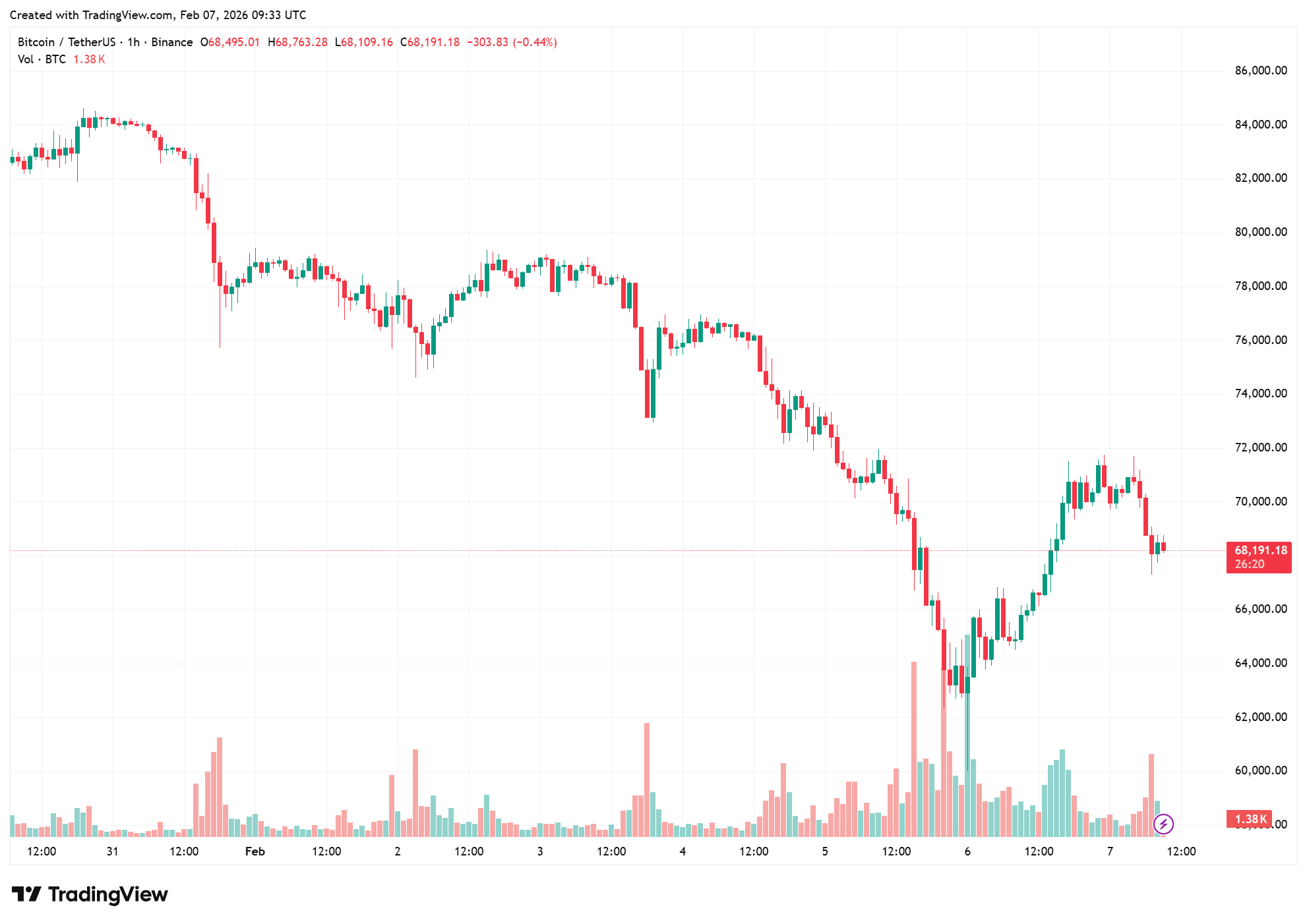 Текущий всплеск интереса произошел на фоне падения курса с $81 500 в начале февраля до $60 000 в течение нескольких дней. После этого актив частично восстановился и на момент публикации материала торгуется около $68 000.