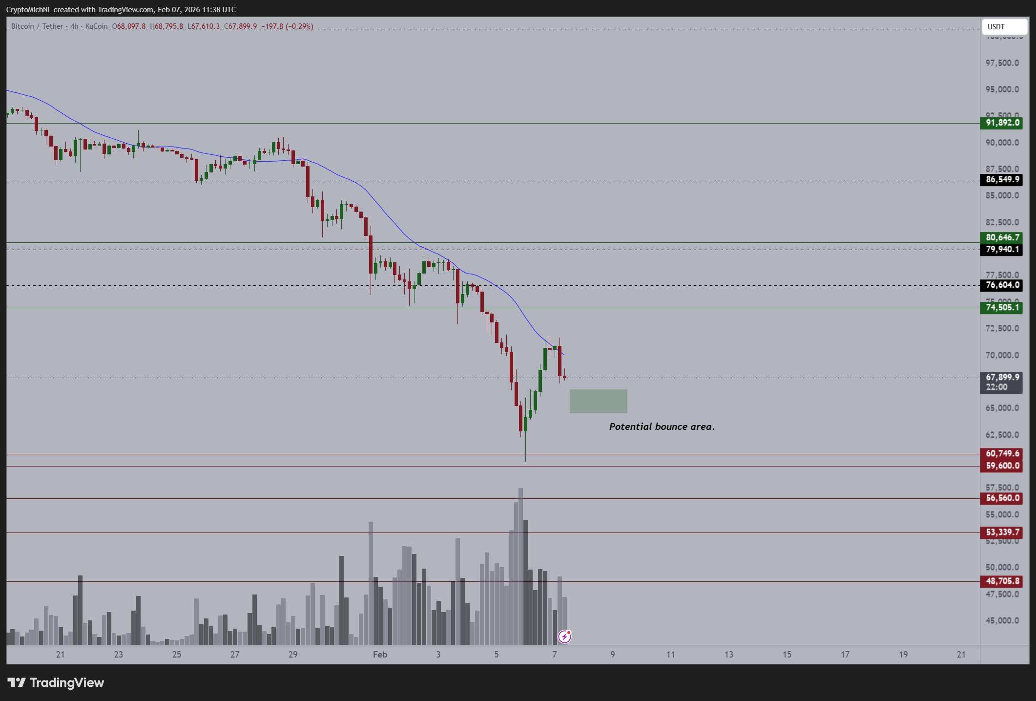 Данные TradingView показали, что с начала открытия дневных торгов 7 февраля криптовалюта упала более чем на $4000.