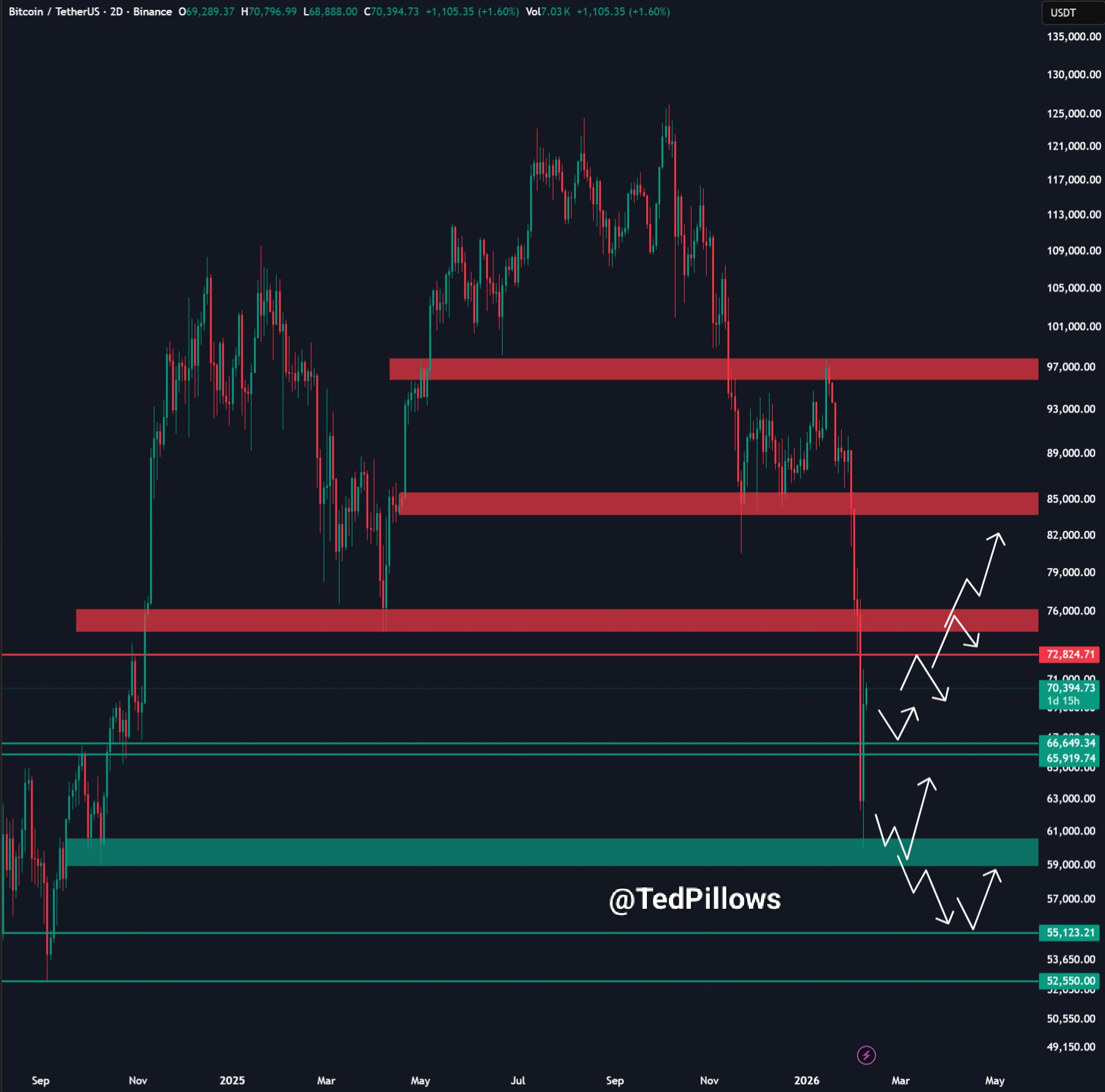 Однако Пиллоуз предупреждает: если цифровое золото потеряет зону поддержки $66 000-68 000, это может привести к повторному тестированию недельного минимума.
