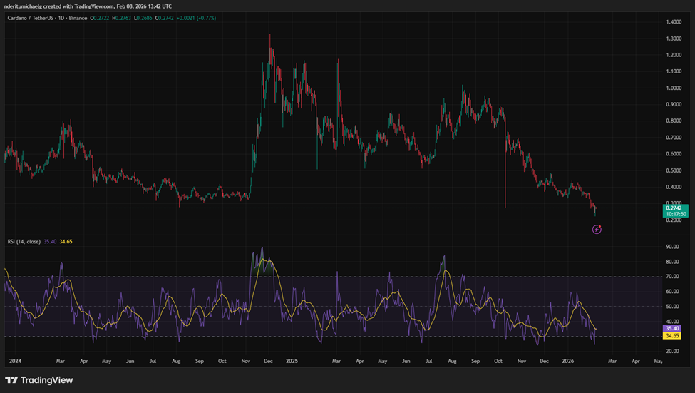 RSI находится на уровне 39,49, восстанавливаясь после перепроданных условий, но всё ещё ниже нейтраля. MACD остаётся отрицательным, но стабилизировался, что говорит о снижении импульса без сигнала о развороте.