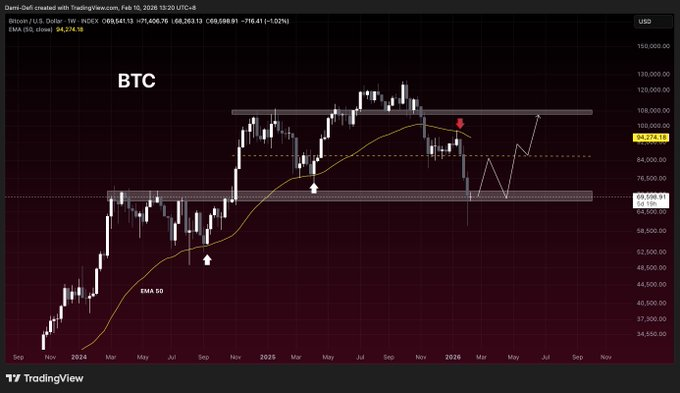 Если биткоин стабилизируется на текущих уровнях и позже поднимется выше 84 000 долларов, может начаться более широкое восстановление. Однако если недельные цены опустятся ниже $69,000, аналитики предупреждают, что рынок может опуститься к среднему или низкому диапазону $60,000, прежде чем найти более сильную поддержку.