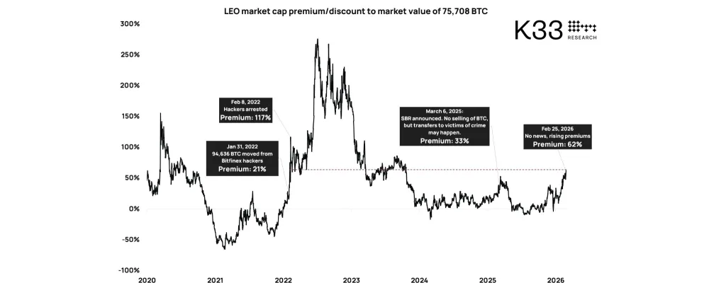Положительная динамика монеты $LEO свидетельствует о приближающемся завершении судебного процесса, связанного со взломом биржи Bitfinex. В результате биткоин-резерв США может потерять около 30% объема, заявил ведущий аналитик K33 Research Ветле Лунде.