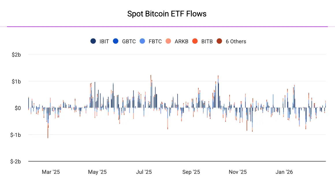 С начала года отток из биткоин‑ETF превышал приток: повышенная волатильность и падение цен подрывали доверие как розничных, так и институциональных инвесторов.