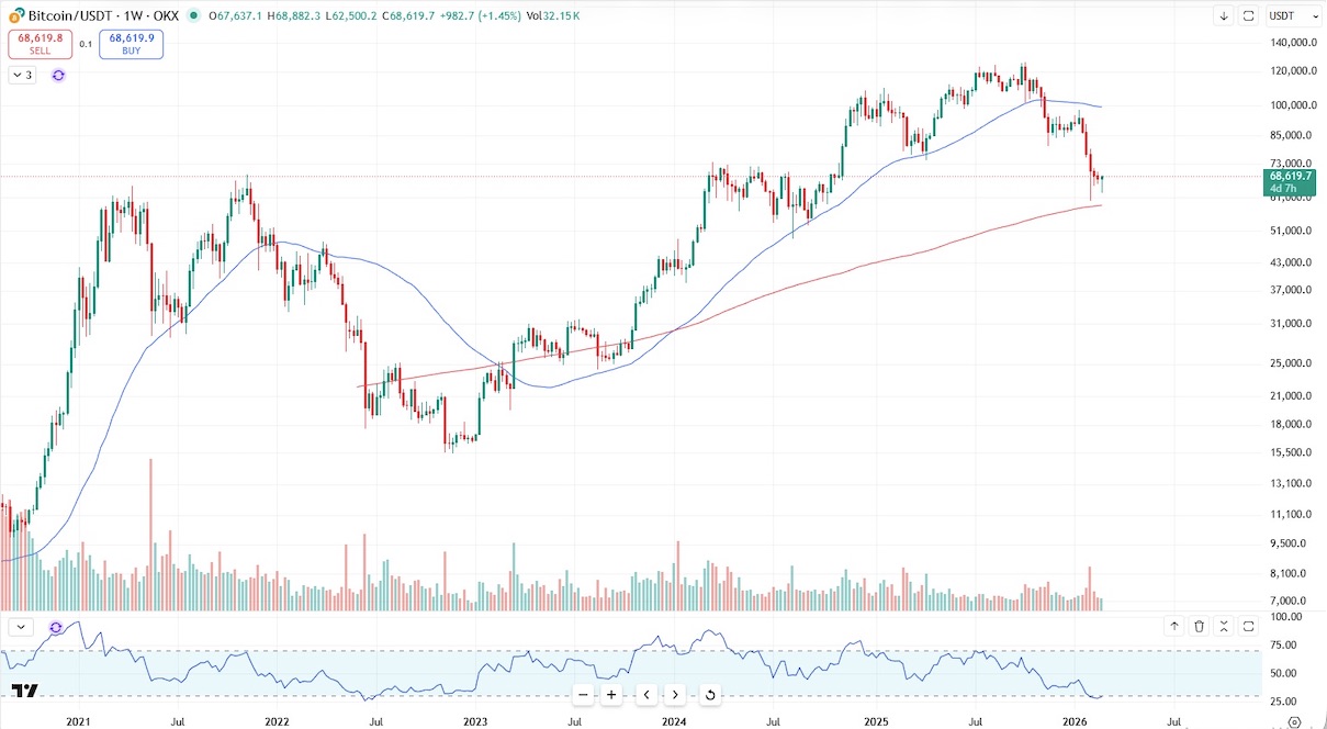 На момент написания материала биткоин торгуется в районе $63–68 тыс. — примерно на 48–50% ниже октябрьского исторического максимума $126 тыс. Такое глубокое коррекционное движение типично для криптоактивов после достижения новых вершин, однако оно вызывает сильную эмоциональную реакцию у участников.