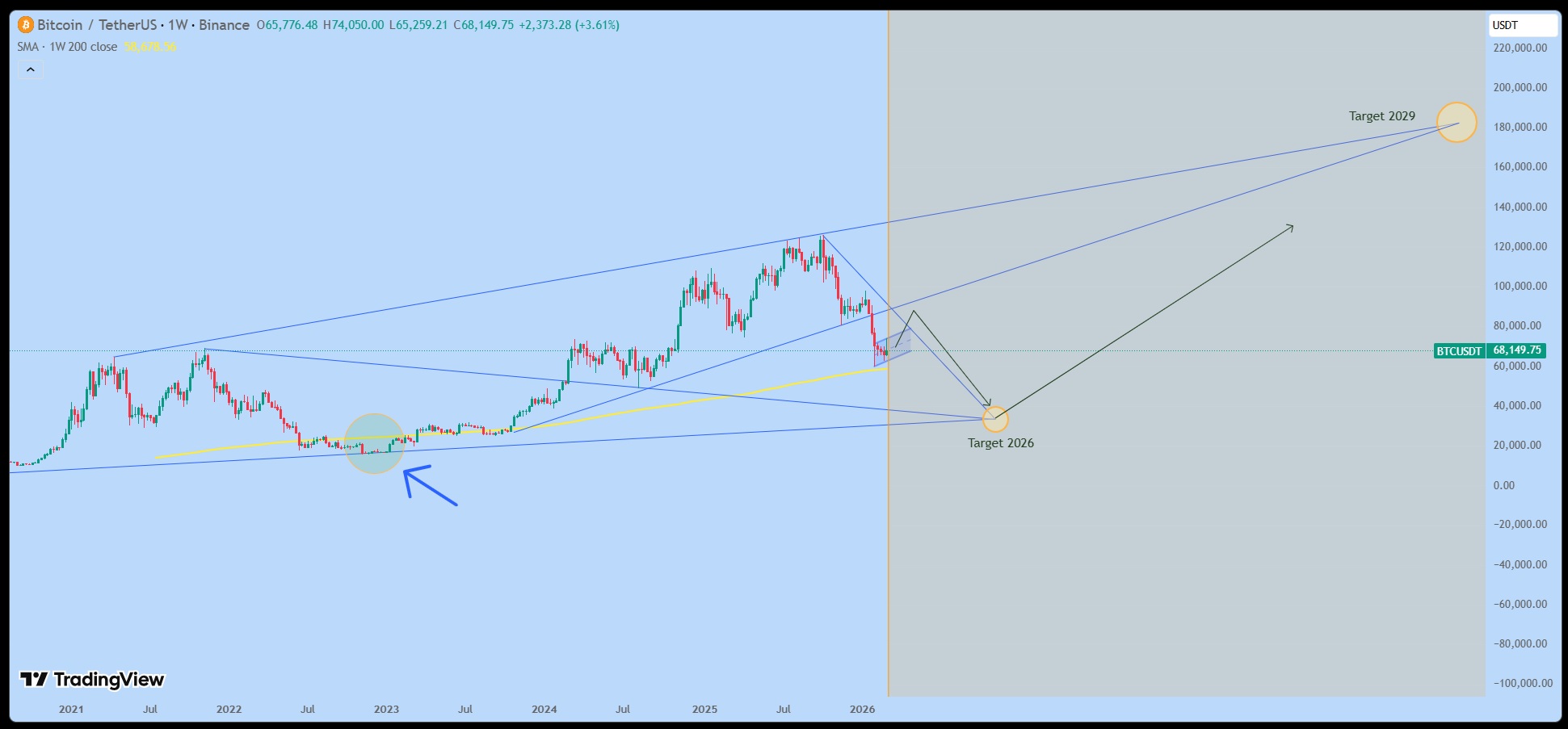 Mandrake FX ожидает, что если промежуточная поддержка на $63 000 и макроуровень $58 000 будут пробиты, структурный путь актива может открыться к промежуточной ликвидности на $50 000 и финальной зоне накопления в районе $40 000-42 000.