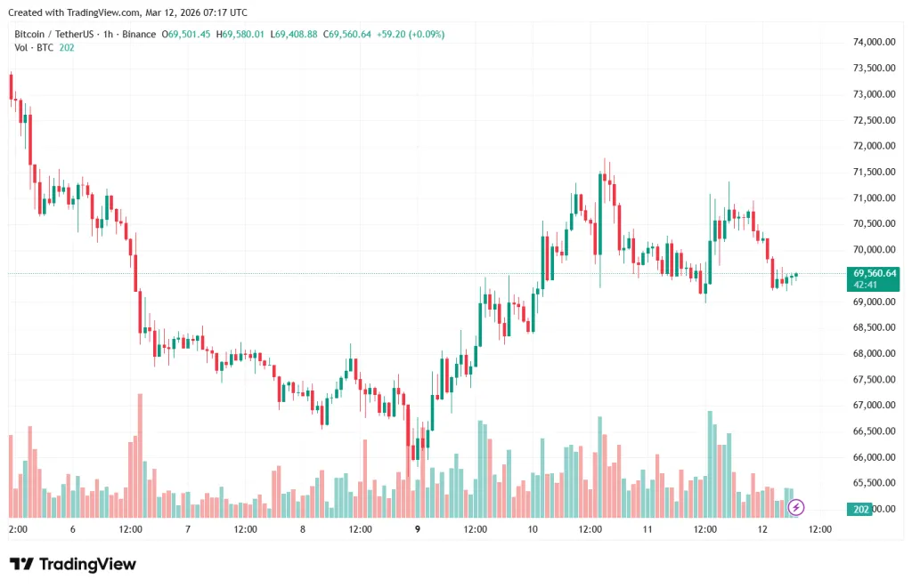 На момент написания первая криптовалюта торгуется около $70 000. Монета перешла к росту на фоне резкого снижения цен на нефть. Вслед за флагманом подорожали Ethereum, Solana и XRP.
