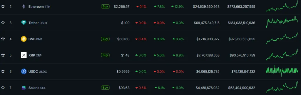 На момент написания биткоин торгуется вблизи отметки $73 740, прибавив 3,2% за прошедшие сутки. Позитивную динамику поддержали ведущие альткоины: Ethereum вырос на 7,8% — до $2266, $XRP прибавил 5% — до $1,48, а Solana подорожала на 6,1% — до $93,63.
