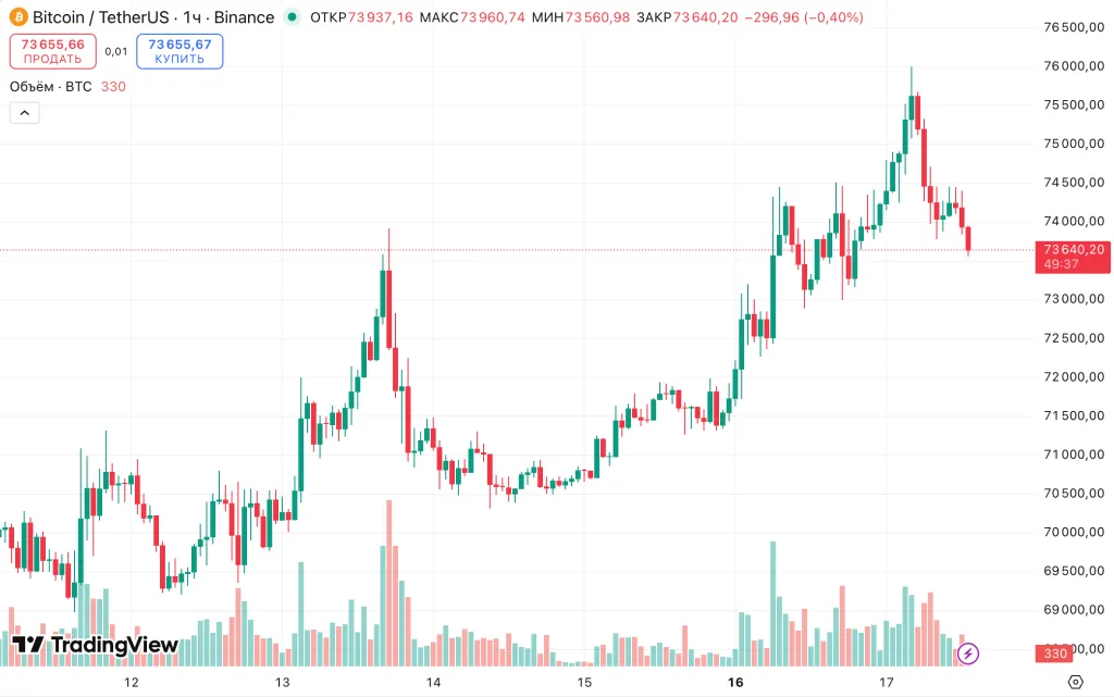На момент написания первая криптовалюта торгуется около $73 600.