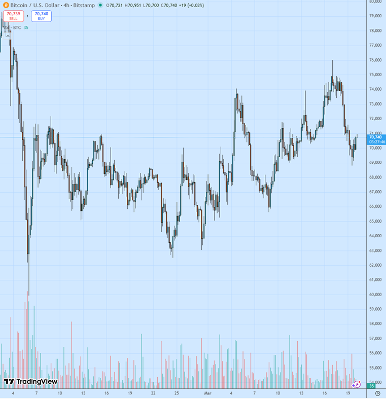 В пятницу утром последовало закрытие коротких позиций, которое вывело котировки к отметкам выше $70 000.