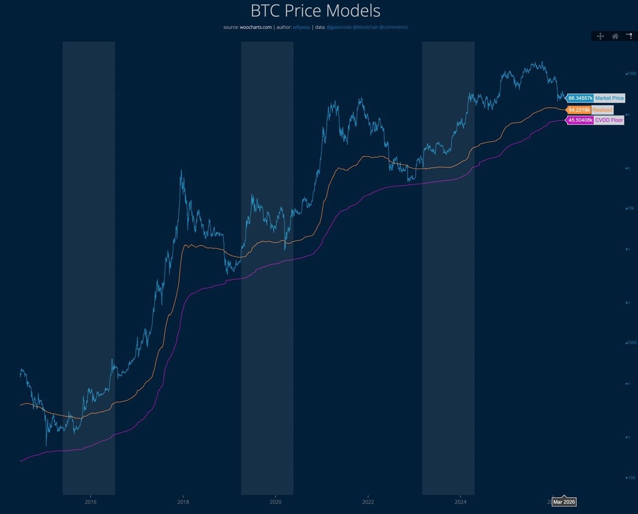 Исторические данные указывают, что локальный минимум курса биткоина ($BTC) в текущем цикле будет находиться в диапазоне $46-54 тыс., считает аналитик Вилли Ву. Однако, по его оценкам, в случае долгосрочного общего спада на рынке рисковых активов, провал в криптовалюте будет глубже.