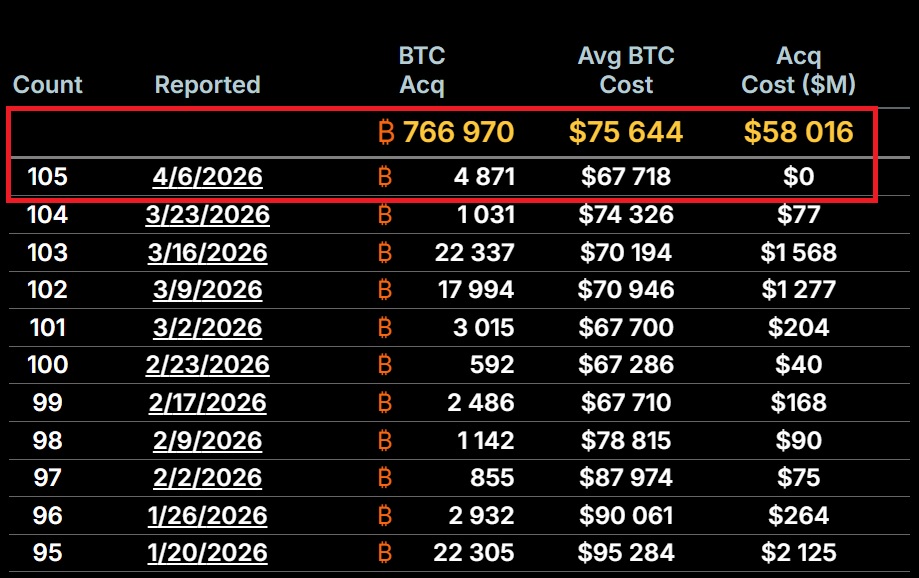 Strategy вернулась к пополнению криптовалютных резервов после короткого перерыва. Согласно последнему отчету корпорации, за последнюю неделю компания купила еще 4871 $BTC.
