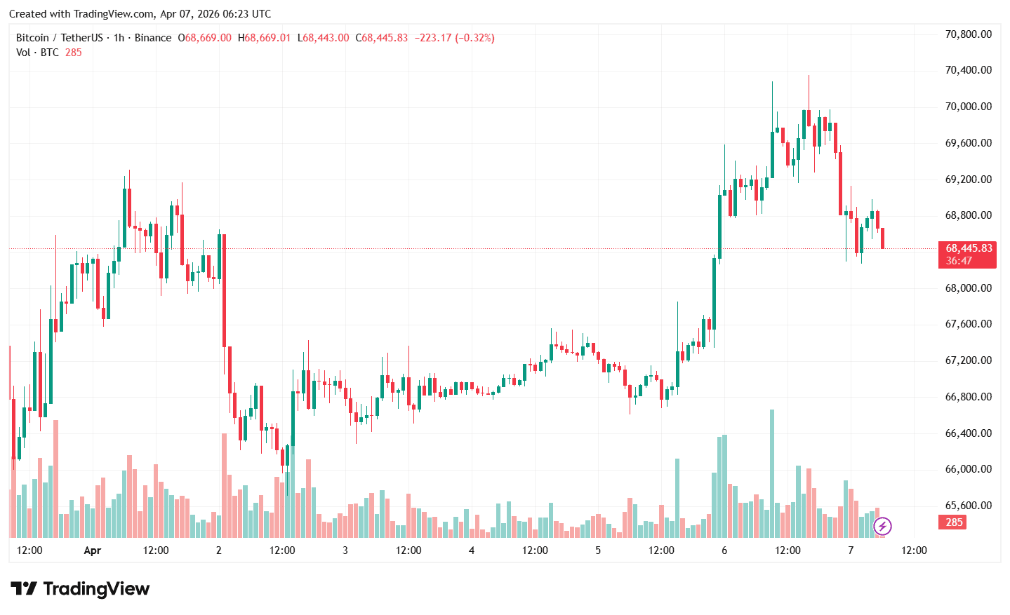 Однако она все еще значительно выше рыночной. При подготовке этого материала биткоин торгуется по $68 445, согласно TradingView.