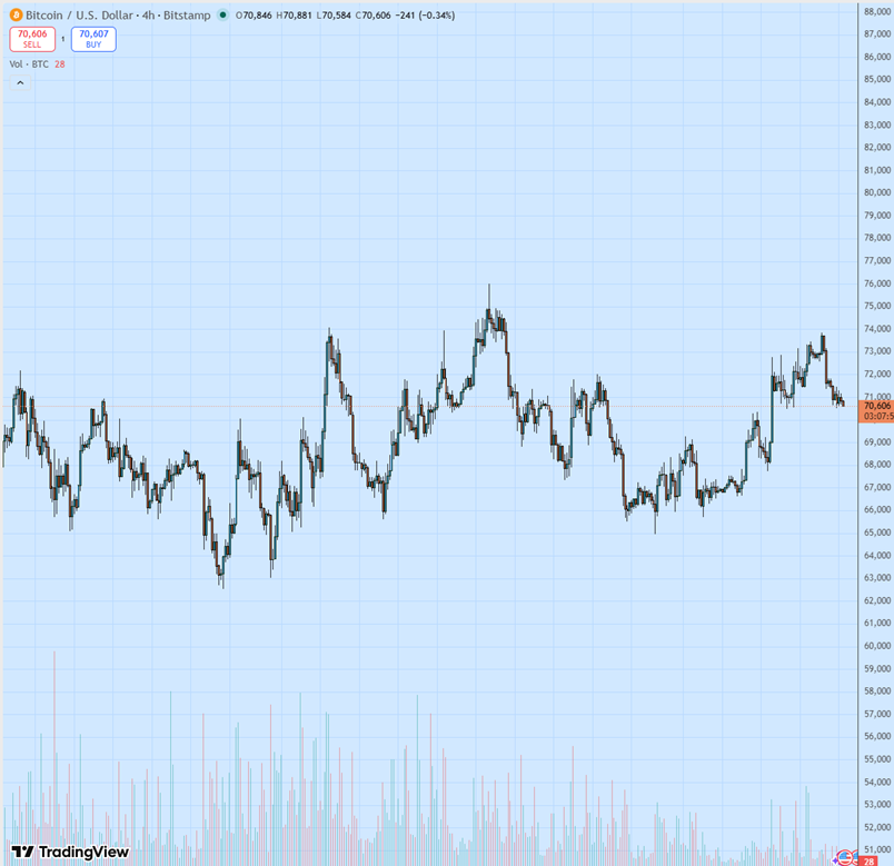 Биткоин откатился к $70 500