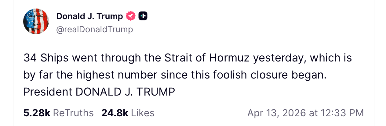 Трамп приказал закрыть Ормузский пролив после того, как в выходные дни провалились переговоры о прекращении огня между США и Ираном. Пролив является важнейшим путем для мировых поставок нефти. Эта новость сначала оказала давление на рисковые активы, но затем трейдеры переключились на биткоин и другие инструменты хеджирования.