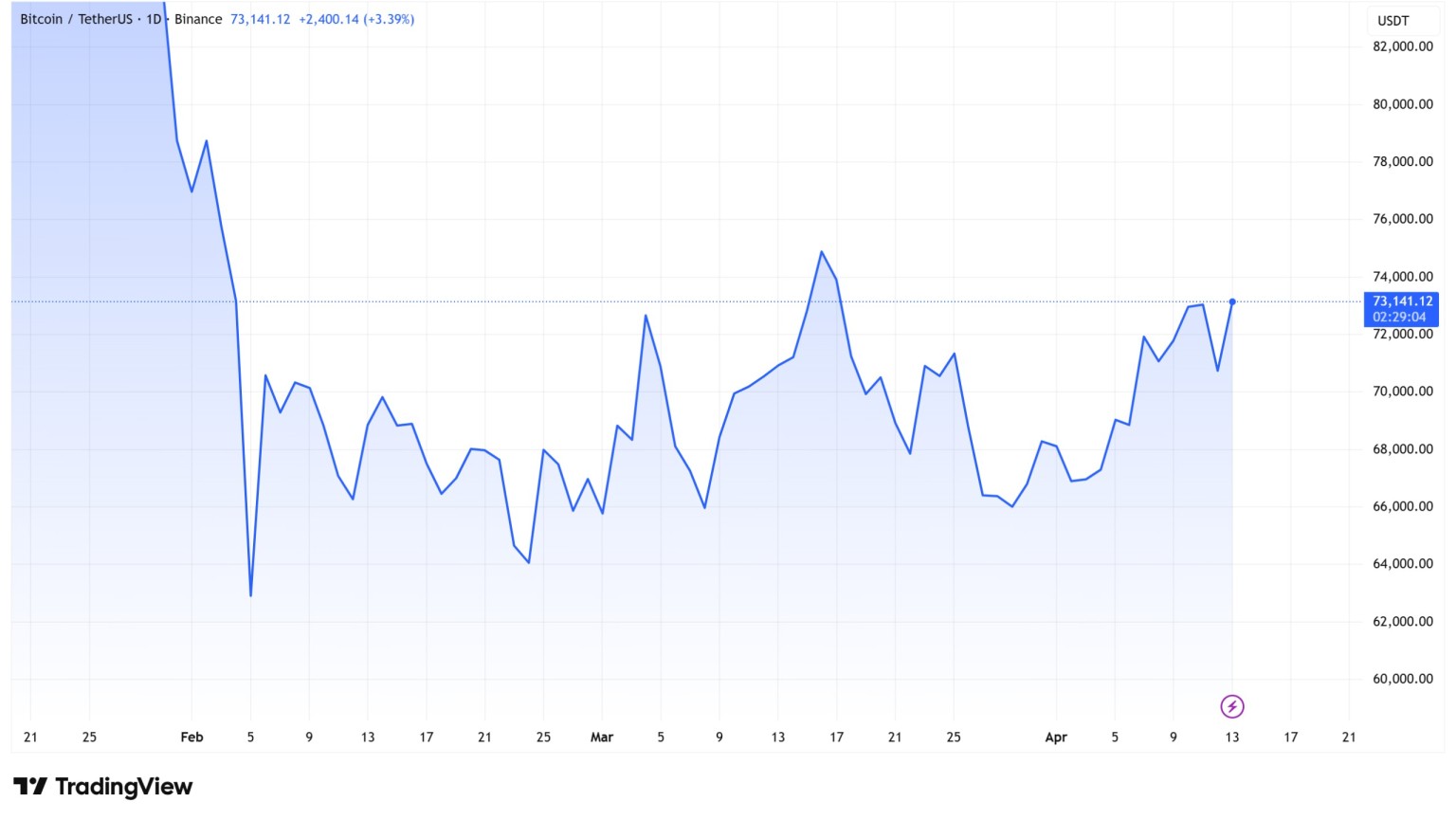 Динамика цены биткоина. Источник: TradingView