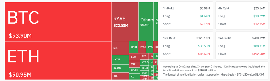 По данным Coinglass, за последние 24 часа ликвидации шортов по биткоину составили $80,9 млн, лонгов — $13 млн.