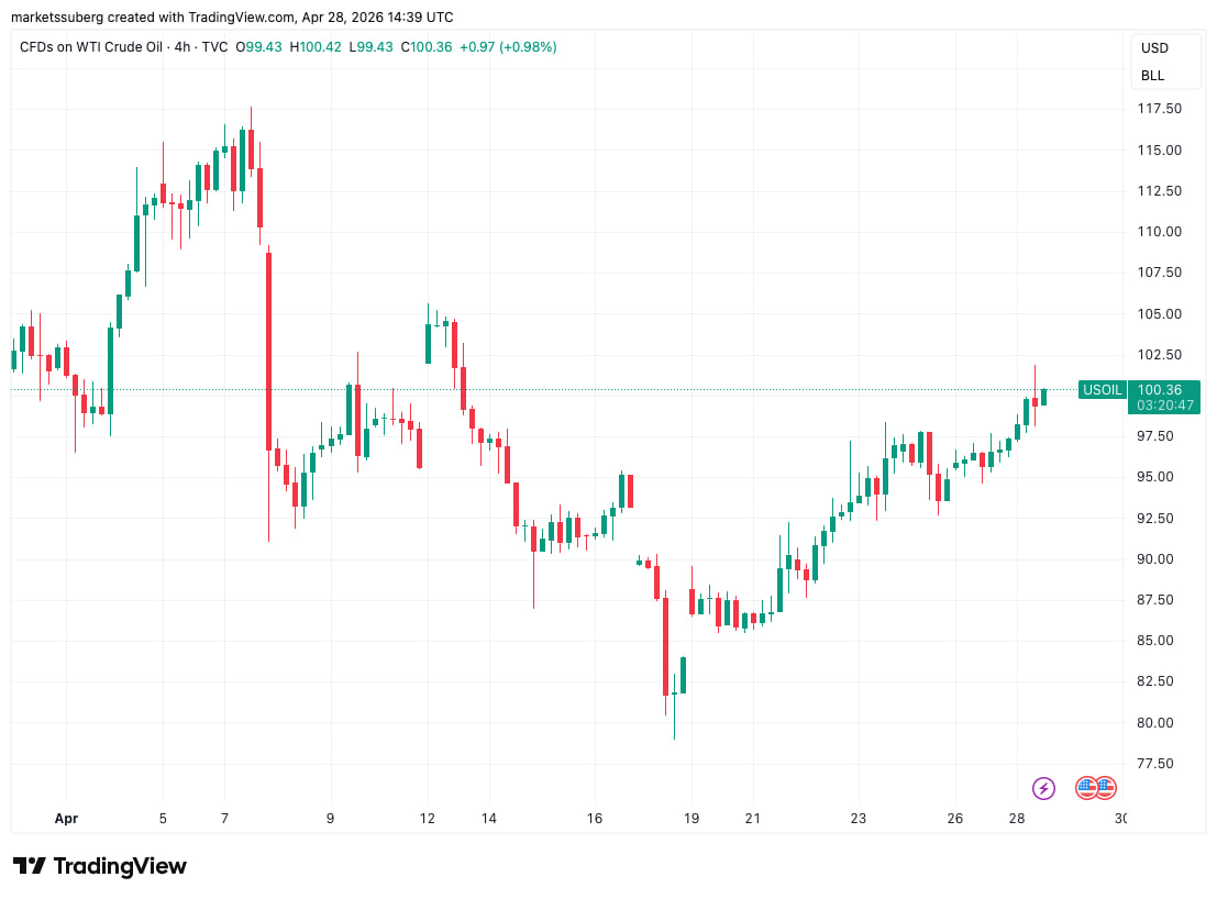 Ключевой триггер — сырьевой рынок. Нефть WTI вновь приблизилась к $100 за баррель, и это сразу изменило оценку инфляционных рисков. Чем дороже энергия, тем выше вероятность жесткой политики со стороны центробанков.