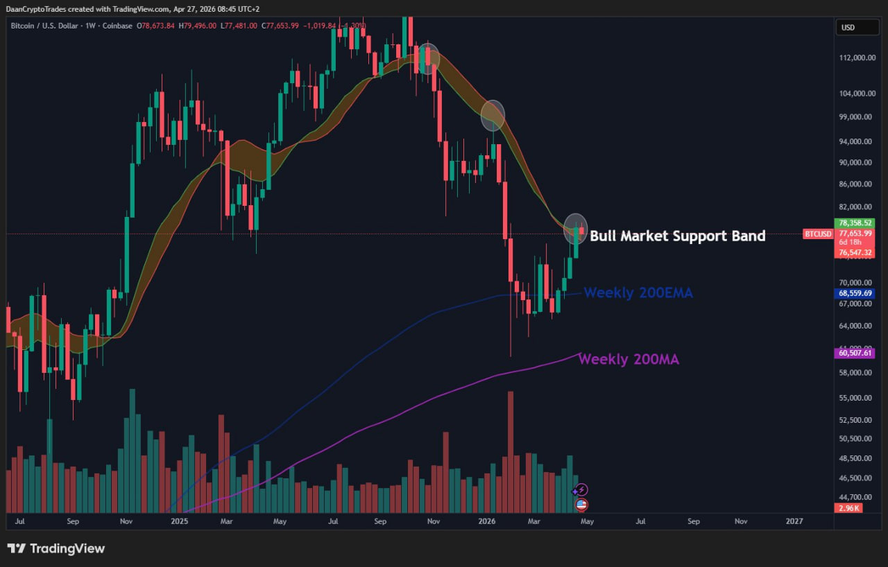 Недавние попытки закрепиться выше $78 000 не получили продолжения. Цена развернулась и вернулась к более низким уровням, что снизило уверенность участников рынка.