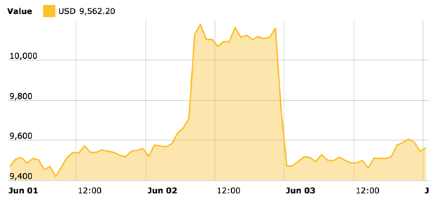 В подкасте Coinist Су Чжу выразил убеждение, что волатильность 2-3 июня повторит себя в будущем. В те дни биткоин резко подскочил на 10% до $10 380, побыл на этой высоте в течение нескольких часов, а потом также стремительно обвалился обратно к $9500.