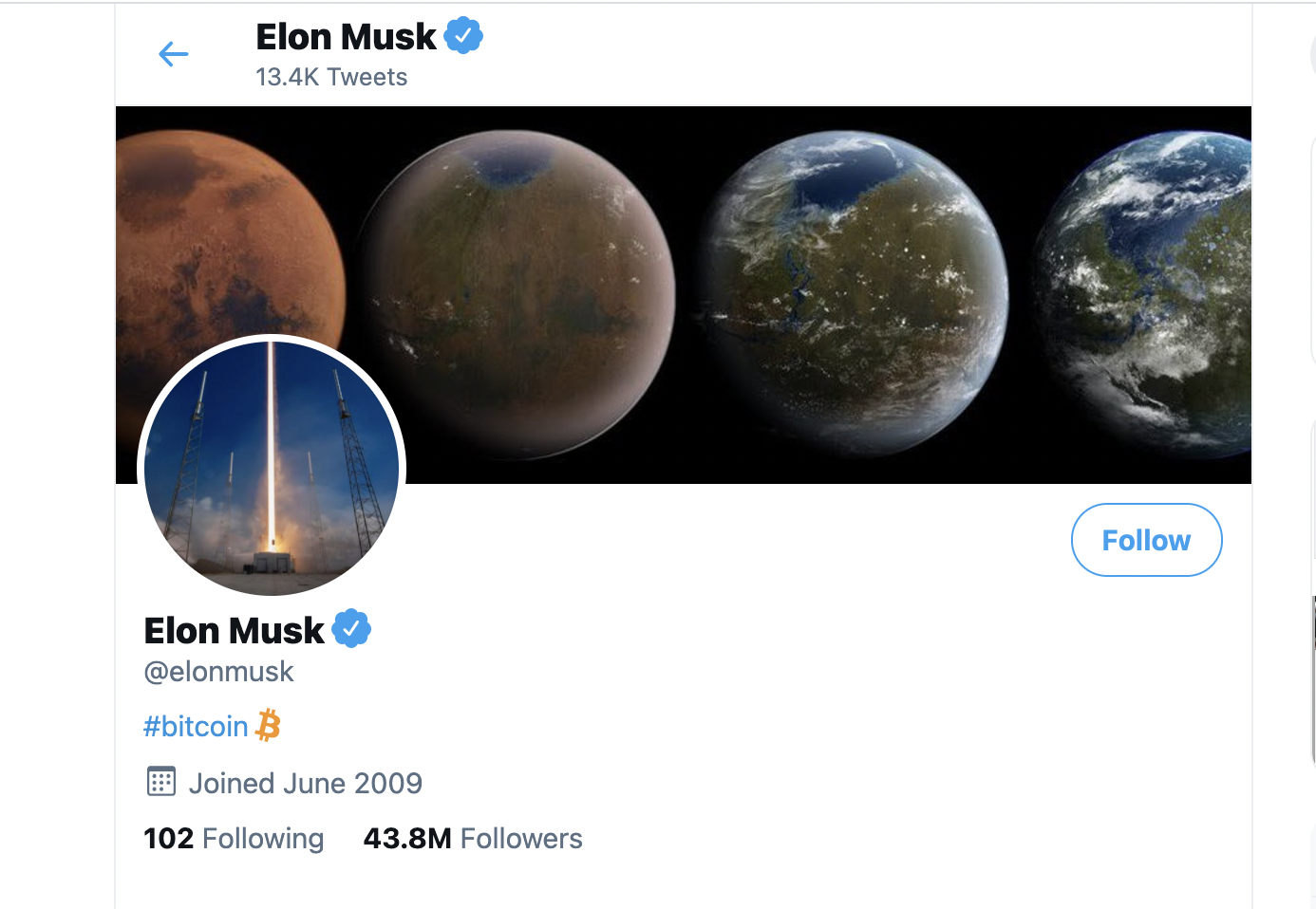 В пятницу, 29 января, цена биткоина выросла более чем на $5000 за час после того, как основатель SpaceX, а также генеральный директор Tesla Илон Маск добавил хештег #bitcoin в описание профиля в Twitter.