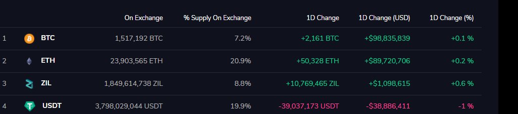 Еще одним тревожным фактором аналитик называет динамику притока/оттока активов на биржах. Так, за последние сутки биржевой остаток в биткоинах вырос на 2 161 $BTC ($98 млн). За это же время отток стейблкоина USDT составил $39 млн.