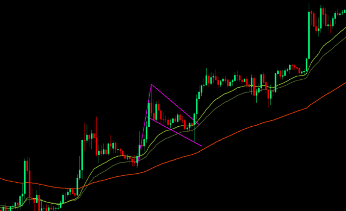 Впоследствии ликвидность на этих повышенных уровнях иссякает, в результате чего следует полный откат восходящего движения. В отличие от «Барта», на бычьем флаге пулы ликвидности располагаются ниже графика. Другими словами, снижения откупаются, но более высокие максимумы не возникают, то есть нет признаков «охоты за стопами». Такая модель часто завершается прорывом сопротивления для уверенного движения вверх, чего нельзя сказать о «Барте».