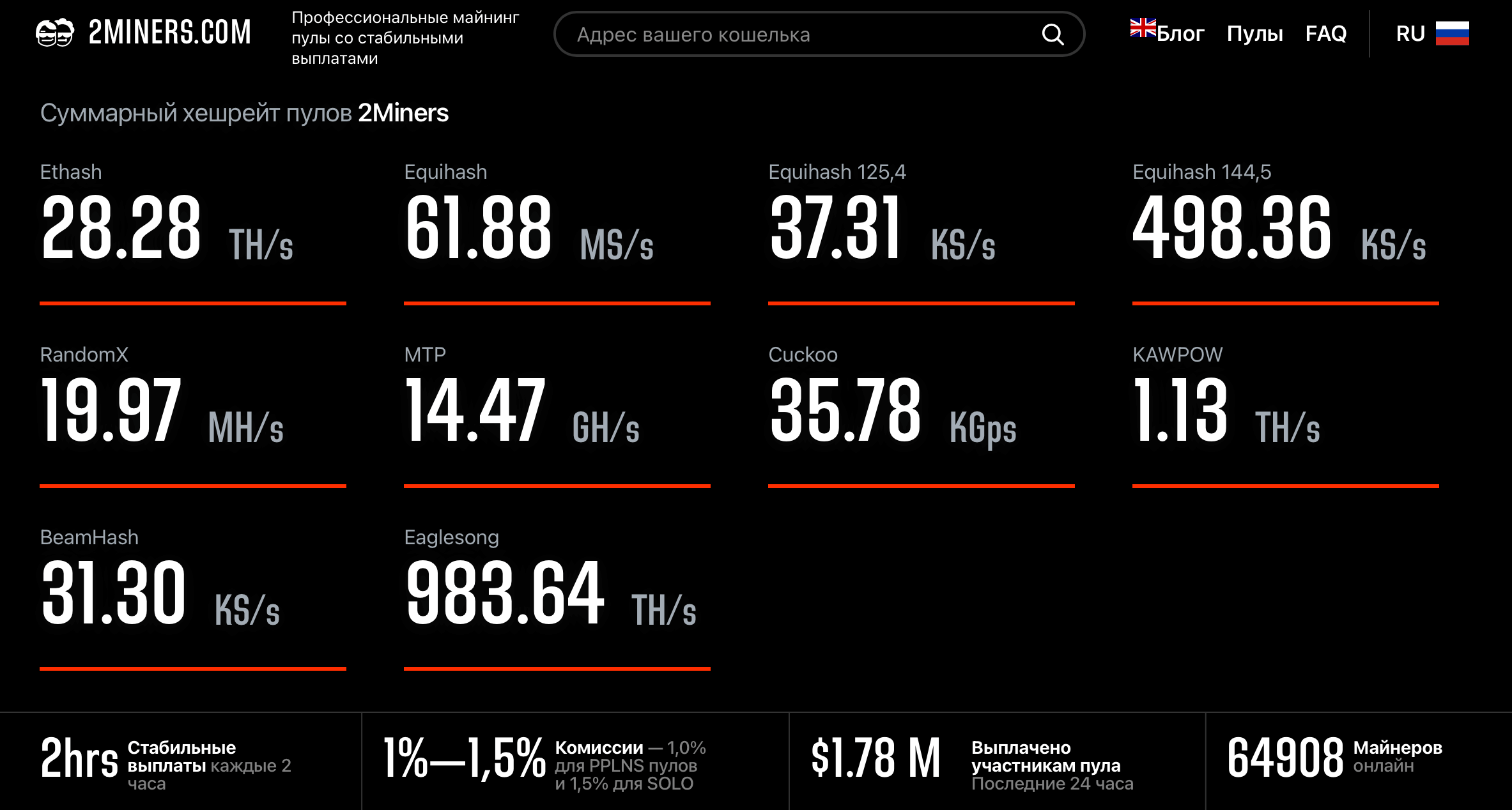 Самыми популярными монетами среди пользователей пула остаются Эфириум, Ravencoin и Ethereum Classic.