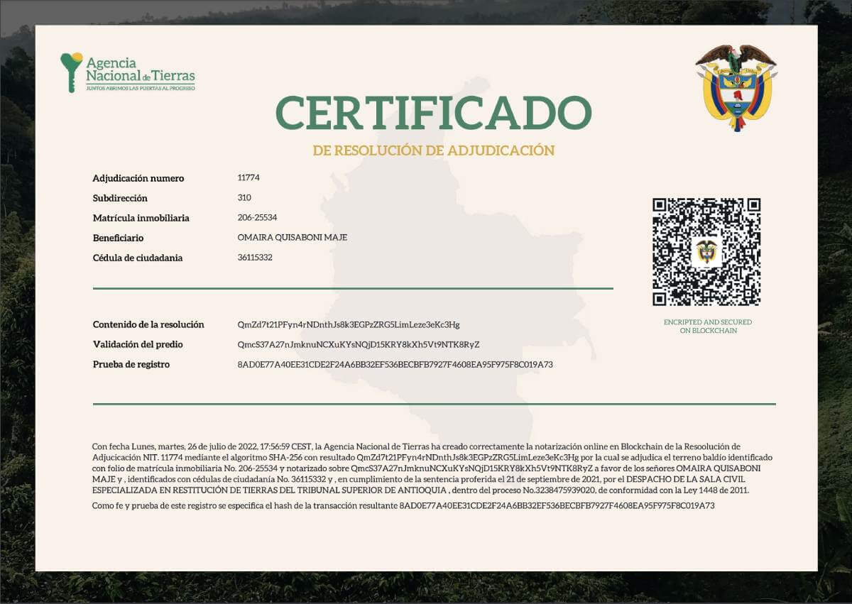 О сотрудничестве Ripple с колумбийским правительством стало известно в начале лета. 30 июля сотрудники фирмы совместно с разработчиками ПО из Peersyst Technology и работниками Национального земельного агентства выпустили на блокчейне XRP первый токен, привязанный к сертификату о владении земельным участком.