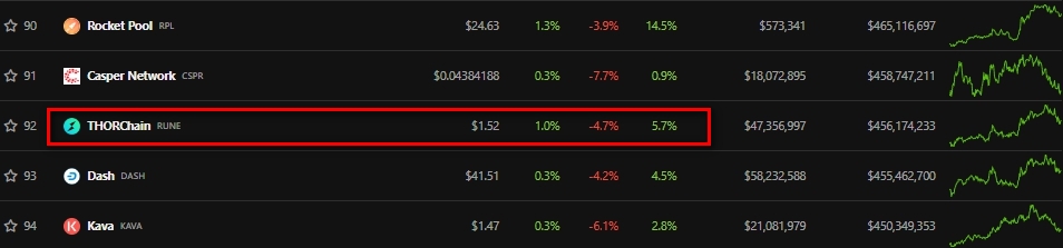 Нативный utility-токен проекта RUNE за последние 24 часа подешевел на 4,7% (CoinGecko). Однако это движение соответствует рыночному тренду, и многие монеты продемонстрировали большее падение. Котировки биткоина снизились на 2,5%.