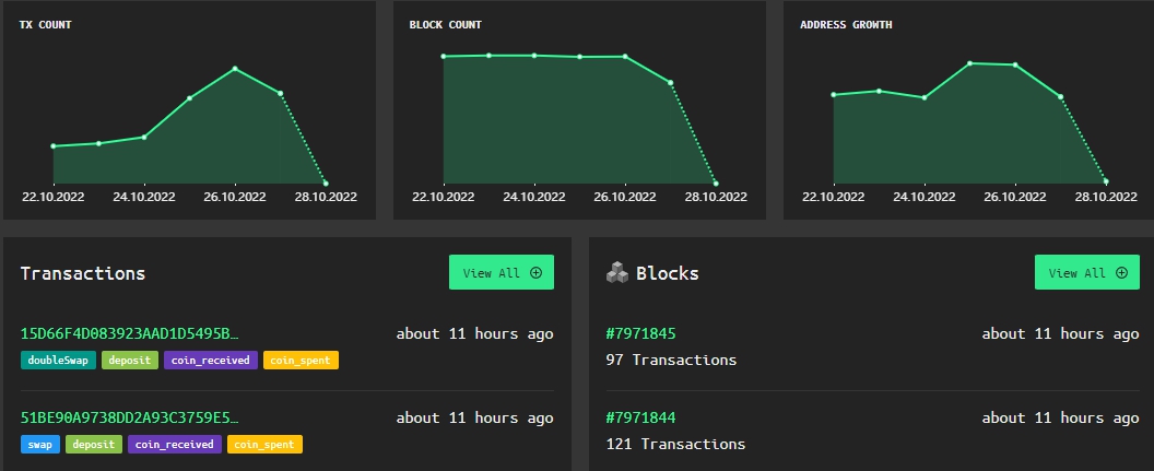 На момент написания новые блоки в сети не появляются уже на протяжении 11 часов.