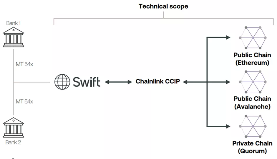 Работая с различными финансовыми институтами и сетью блокчейн-оракулов Chainlink, в SWIFT удалось показать работоспособность единой точки доступа к нескольким блокчейнам на базе существующей инфраструктуры.
