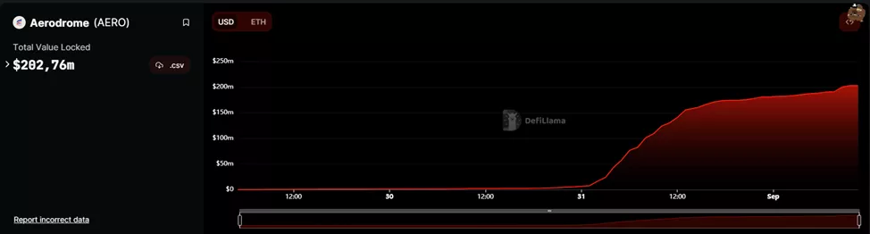 Эмиссия AERO началась 30 августа. За неполных три дня TVL проекта подскочил до $202,8 млн (53% от показателя Base).