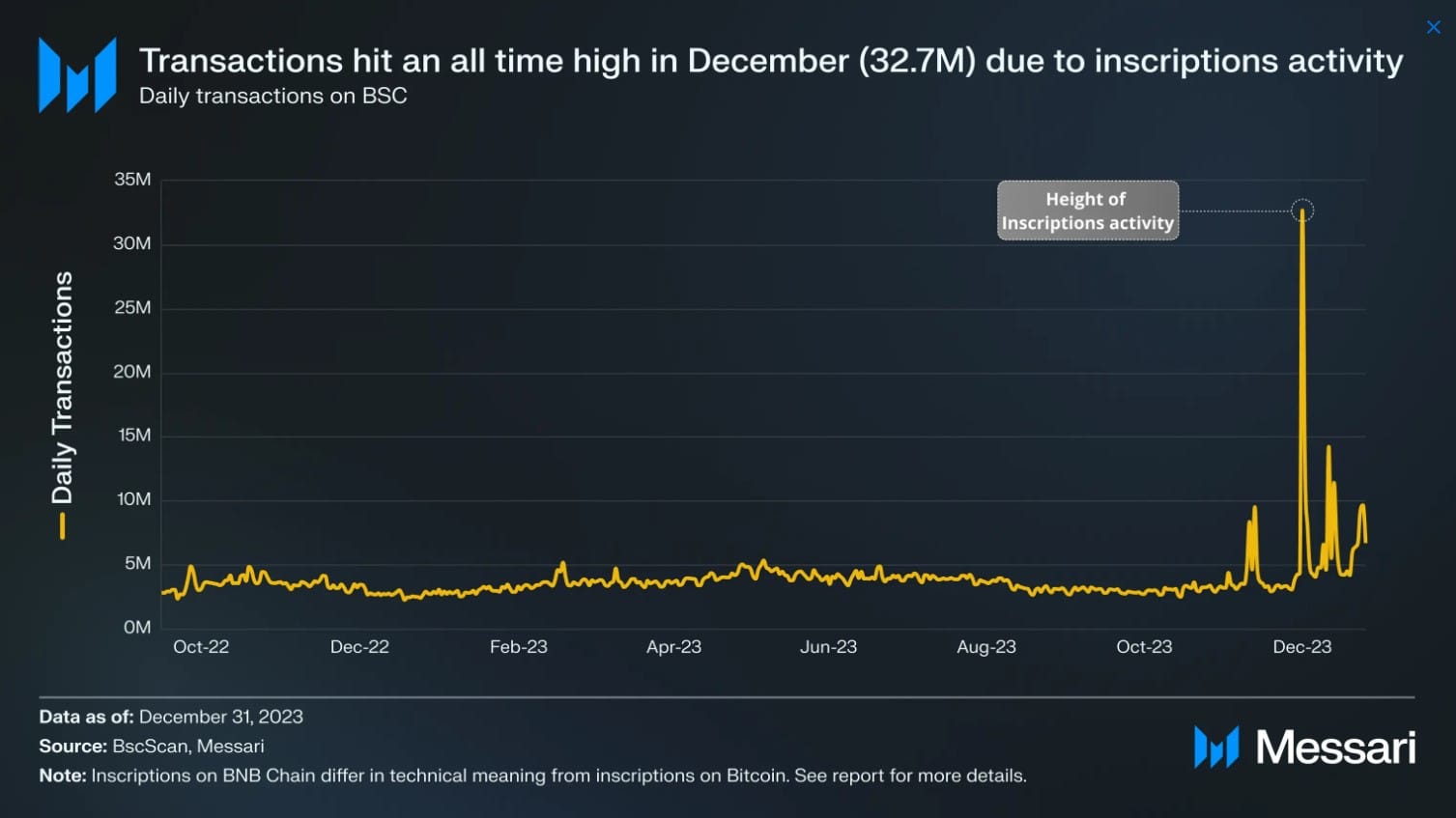 $BNB Smart Chain (BSC) processed a record 32 million transactions in a single day and 4.6 million average daily transactions in Q4’23.