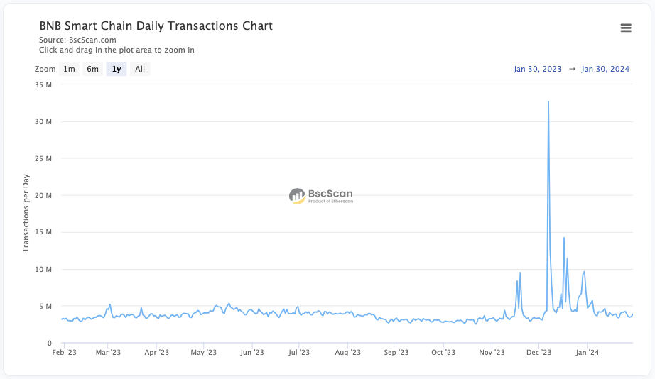 OpBNB стал «самым активным» решением второго уровня с ATH в 71 млн транзакций в день, 4 500 TPS и платой за газ ~$0,001.