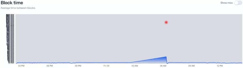 По данным Starknet Monitor, межблочный интервал сети вернулся к обычным значениям в диапазоне трех-шести минут.