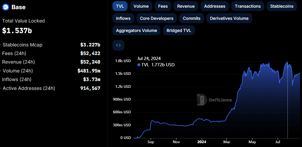 На сегодняшний день Base — один из лидирующих l2-блокчейнов по показателю TVL, по данным L2Beat. Обходит сеть от Coinbase только Arbitrum.