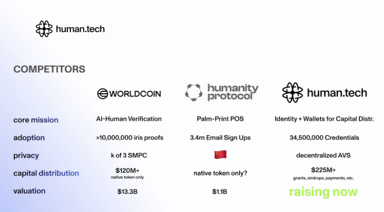 Human.tech против конкурентов, таких как World и Humanity Protocol. Источник: Holonym