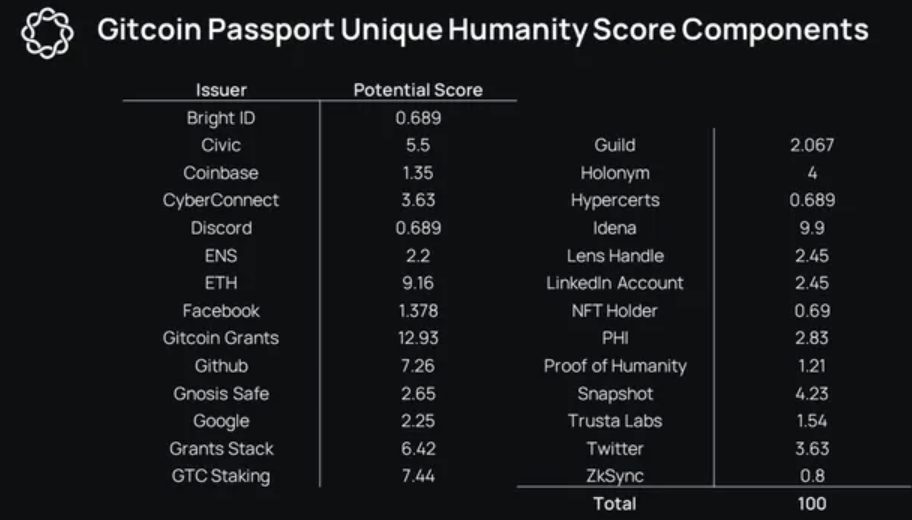 Уникальные компоненты оценки человечности Gitcoin Passport. Источник: Delphidigital.io