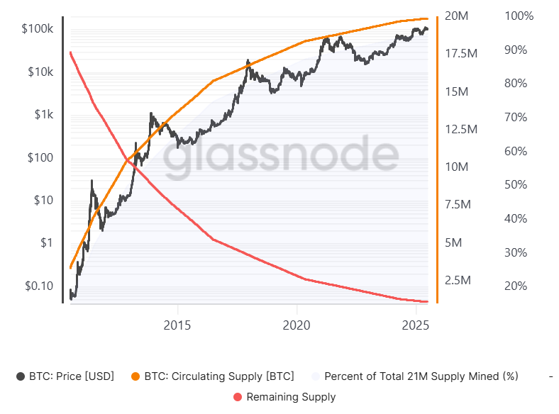 Общий оборотный запас биткоинов по сравнению с его ценой. Источник: Glassnode.