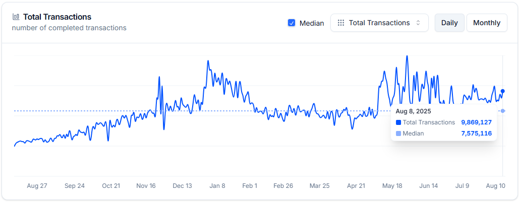 Число транзакций выросло более чем на 2000%. Средний дневной показатель за прошедшие 12 месяцев составил 7,5 млн.