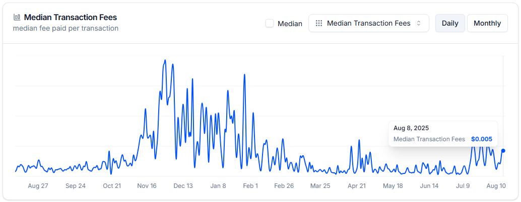 Также снизились сетевые комиссии. Операции на Base подешевели почти вдвое по сравнению с предыдущим годом — до $0,005. При этом в определенные моменты стоимость транзакций опускалась ниже $0,001.