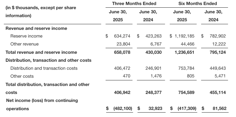 Компания отметила, что на чистый убыток во втором квартале существенное влияние оказали расходы, связанные с первичным публичным размещением акций (IPO) Circle, указав на неденежные расходы, связанные с IPO, в размере $591 млн.