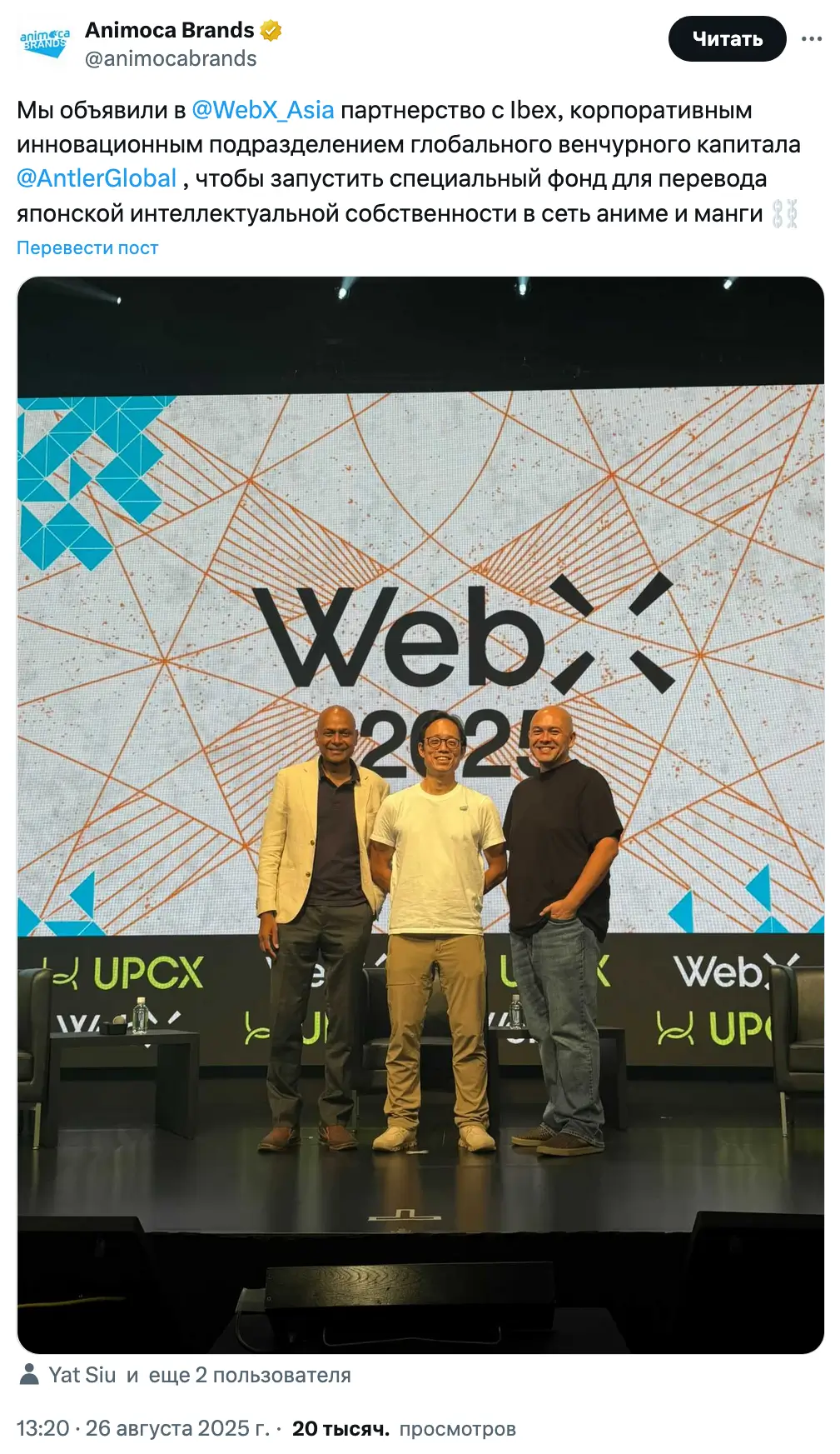 Объявление было сделано во вторник на конференции WebX в Токио, сообщила Animoca Brands в своем сообщении на платформе X.