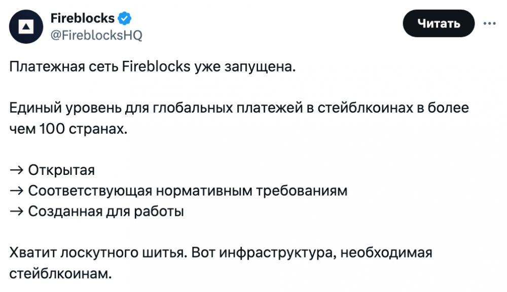 Fireblocks и Tempo будут конкурировать с поставщиками платежных систем стейблкоинов и традиционными платежными системами, такими как Visa и Mastercard, которые вышли на рынок криптовалют в последние годы.