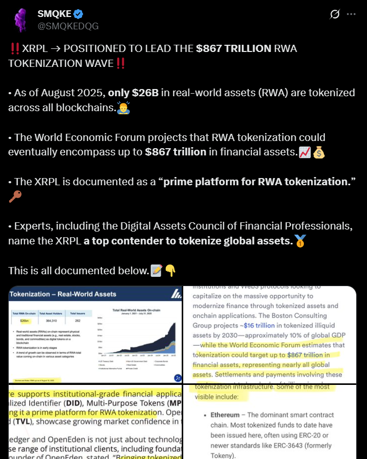 Всемирный экономический форум (ВЭФ) недавно подчеркнул эту тенденцию, отметив, что теперь отрасль выигрывает от уникального сочетания институтов, регуляторов и технологических компаний, которые работают вместе над «созданием надежных, совместимых платформ». ВЭФ заявил, что в случае успеха это сотрудничество может позволить токенизации активов раскрыть свой давно обещанный потенциал.