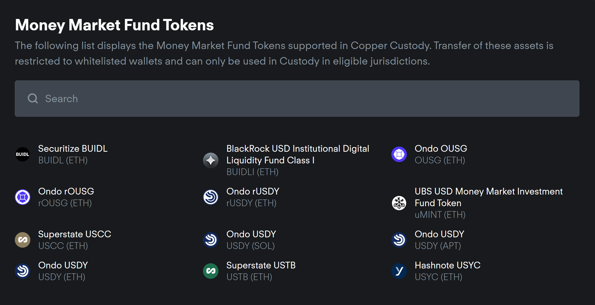 Токены фондов денежного рынка. Источник: Copper.co