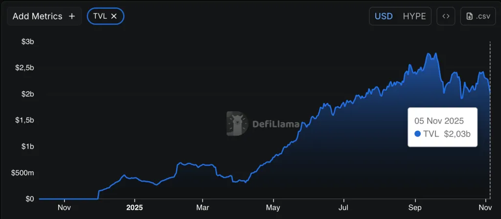 В сети доступны несколько десятков монет, включая стейблкоин USDC от Circle. Эмитент расширил интеграцию с экосистемой Hyperliquid в сентябре. На момент написания TVL HyperEVM превышает $2 млрд.